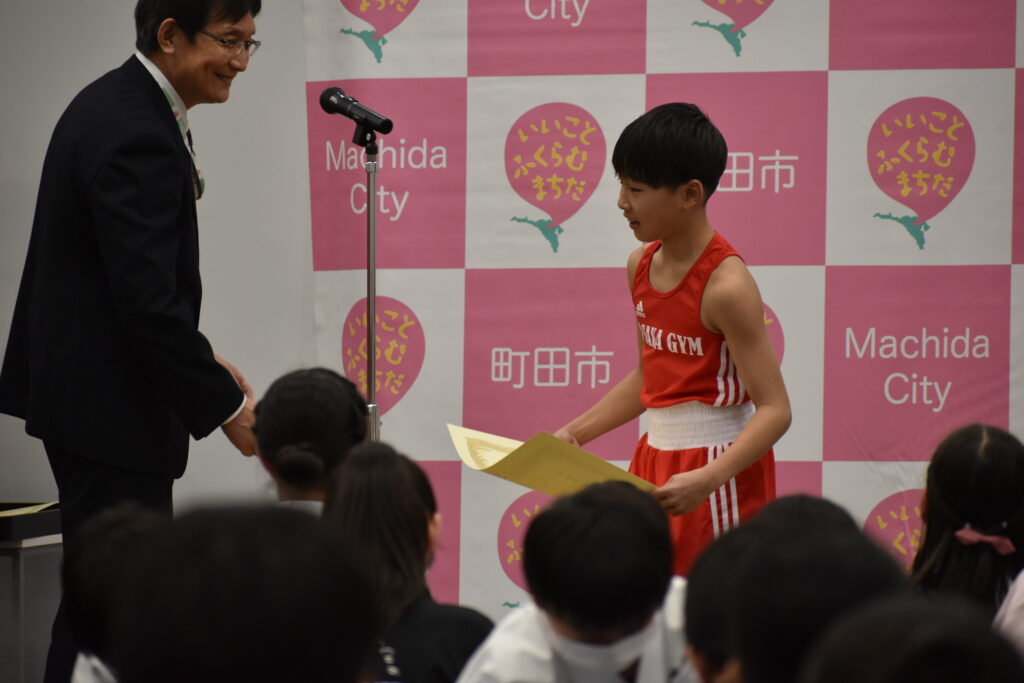 先日、息子が東京都町田市の児童生徒表彰式にご招待いただきました。